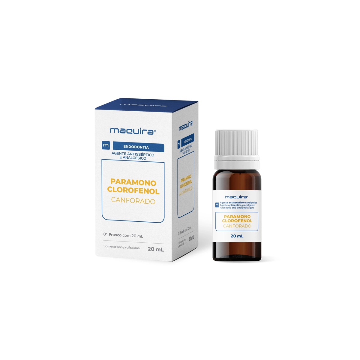 El Paramonoclorofenol Maquira 20 ml es un líquido transparente o ligeramente amarillento, con un característico aroma a alcanfor. Se trata de una solución ampliamente utilizada en odontología conservadora y endodoncia, gracias a su acción antiséptica y analgésica. Su composición combina fenol y cloro, responsables de la potente actividad antimicrobiana, con alcanfor, que modera la irritación propia de los derivados fenólicos. Como resultado, se obtiene un producto con baja agresividad sobre los tejidos vivos en la concentración indicada.